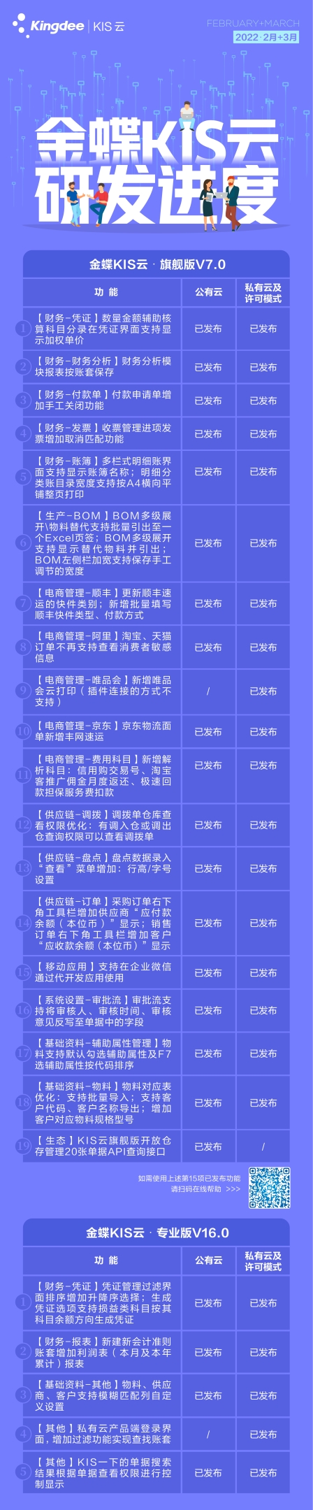 洛陽(yáng)金蝶軟件—2022.2-3月金蝶KIS云產(chǎn)品研發(fā)更新進(jìn)度