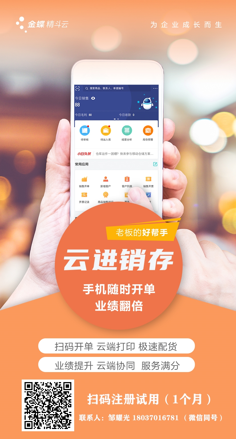 精斗云,金蝶旗下小微企業(yè)一站式云服務(wù)平臺(tái),基于互聯(lián)網(wǎng)技術(shù)及軟件交付模式創(chuàng)新,為企業(yè)提供3大經(jīng)營(yíng)服務(wù)(小程序商城 智慧門(mén)店 2B訂貨)、2大管理服務(wù)(財(cái)務(wù) 進(jìn)銷(xiāo)存)、1大解決方案(新零售全渠道解決方案),助力企業(yè)打造智能化、移動(dòng)化、一體化的經(jīng)營(yíng)管理體系。目前已有超過(guò)100萬(wàn)家小微企業(yè)選擇在精斗云上高效管理生意。