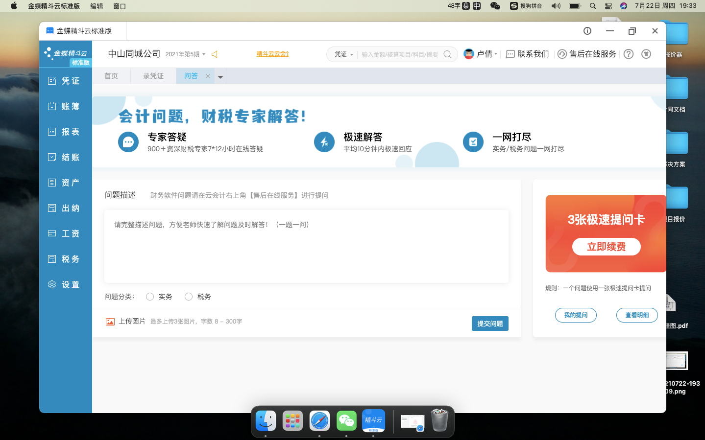 用戶可根據(jù)問題的性質(zhì),選擇該問題屬于實(shí)務(wù)還是稅務(wù)類型,系統(tǒng)支持用戶在文件框內(nèi)用文字描述問題,也支持上傳圖片作為輔助說明。