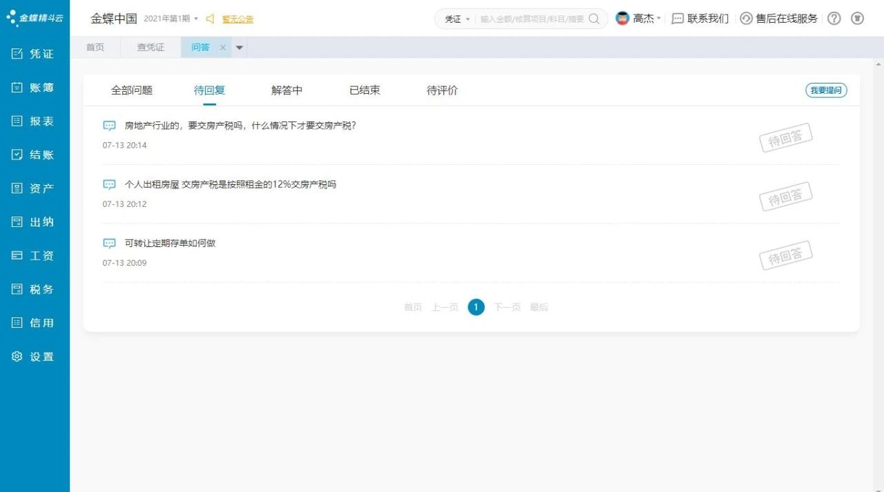 金蝶精斗云的迷你版、標(biāo)準(zhǔn)版產(chǎn)品,在錄憑證、查憑證、明細(xì)賬、科目余額表、結(jié)賬等財(cái)會(huì)最常使用的產(chǎn)品功能界面上提供【會(huì)計(jì)問題,專家解答】按鈕,用戶點(diǎn)擊按鈕即可一鍵發(fā)起提問。系統(tǒng)默認(rèn)向新使用問答服務(wù)的賬套贈(zèng)送3張問答卡。