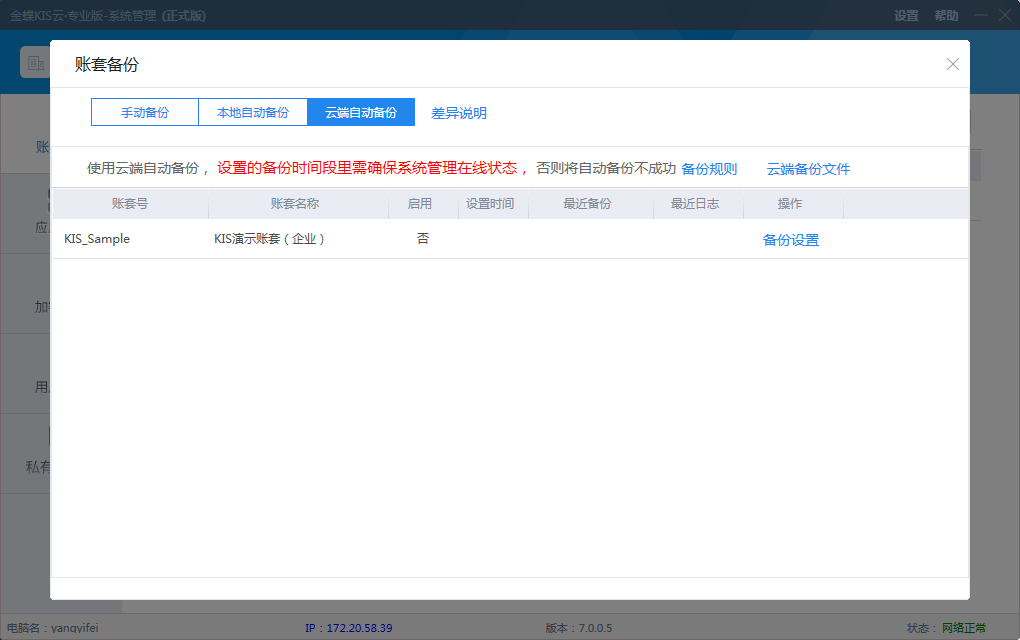 4、系統(tǒng)管理增加賬套自動云備份功能,保障賬套數(shù)據(jù)安全