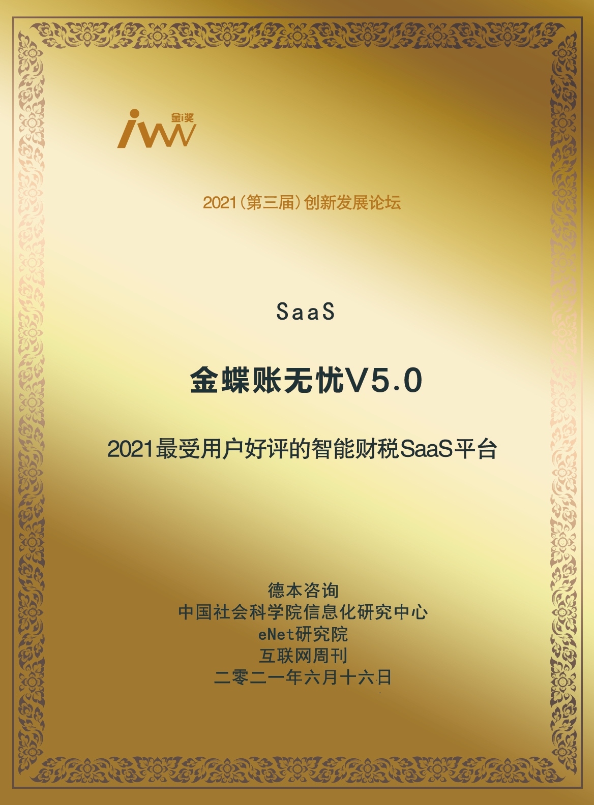 洛陽金蝶軟件,洛陽驍智軟件信息科技有限公司 是金蝶軟件授權(quán)洛陽本地“金牌”合作伙伴,金蝶賬無憂洛陽本地授權(quán)服務(wù)伙伴,從金蝶賬無憂官網(wǎng)獲悉2021年6月16日,由中國科學(xué)院《互聯(lián)網(wǎng)周刊》、中國社會(huì)科學(xué)院信息化研究中心、eNet研究院、德本咨詢聯(lián)合在北京舉辦的“2021(第三屆)創(chuàng)新發(fā)展論壇暨《2021企業(yè)創(chuàng)新發(fā)展白皮書(報(bào)告)》發(fā)布會(huì)在北京舉行,并舉行了隆重的頒獎(jiǎng)典禮,旨在從多維度、全行業(yè)挖掘優(yōu)秀企業(yè)、產(chǎn)品、解決方案,并通過年度企業(yè)評選激勵(lì)各行業(yè)、領(lǐng)域中業(yè)務(wù)創(chuàng)新、技術(shù)先進(jìn)、服務(wù)貼心的代表性企業(yè)。