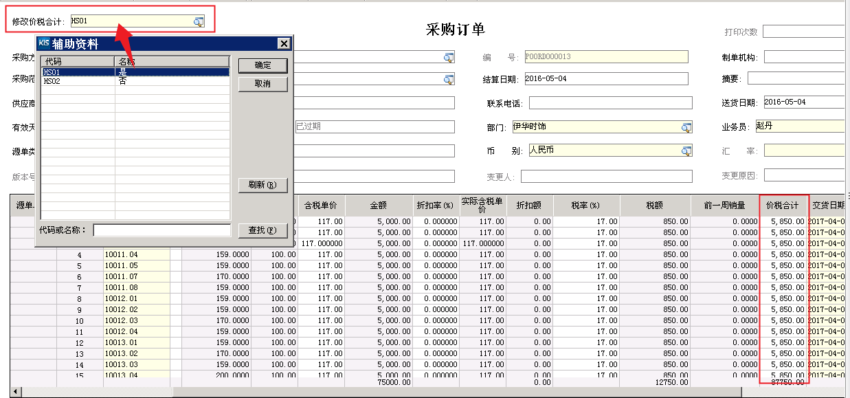 ▲ 銷售訂單-修改價(jià)稅合計(jì)
