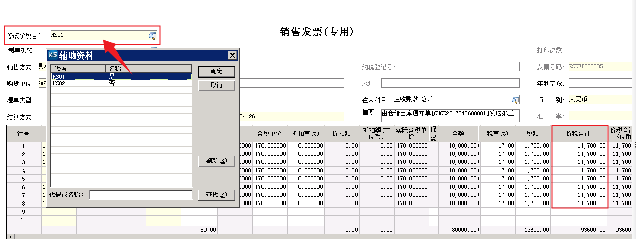 ▲ 銷售發(fā)票(專用)-修改價(jià)稅合計(jì)