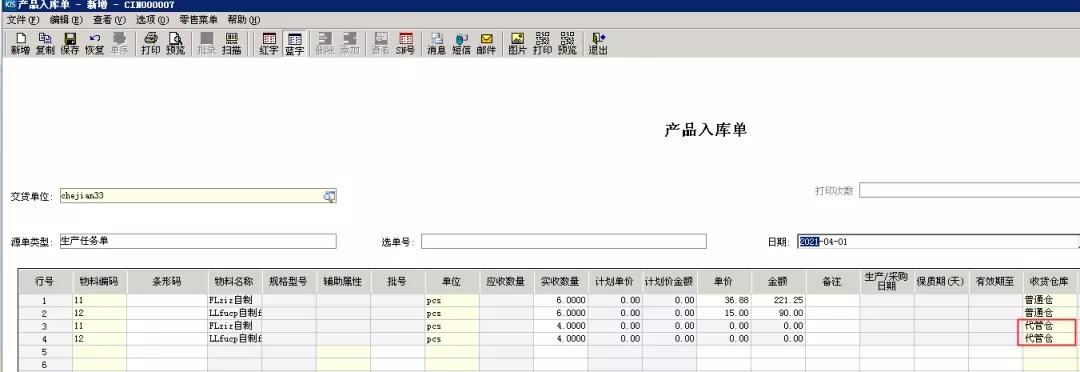 設(shè)置好倉庫屬性之后,用戶便可根據(jù)單據(jù)分錄的倉庫屬性,將廢品、贈品、客供料等物料與正常物料一同入庫,提升入庫效率,并且,入庫單據(jù)同時顯示實倉、虛倉倉庫,方便用戶集中處理所有入庫業(yè)務(wù)。
