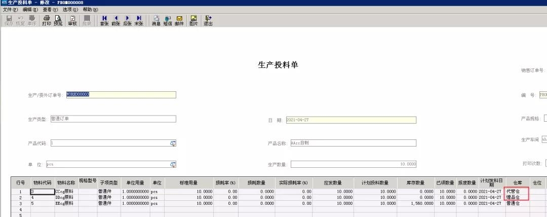 由于BOM單/生產(chǎn)投料單的「發(fā)料倉庫」和配套/倒沖/分倉領(lǐng)料均支持選擇「代管倉、贈品倉」類型倉庫,擴大了投、領(lǐng)料可用倉庫范圍,用戶可直接從虛倉開展投料和領(lǐng)料業(yè)務(wù),加快生產(chǎn)與委外加工。