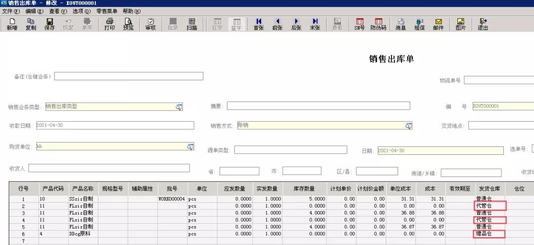 與入庫業(yè)務(wù)一樣,用戶也能根據(jù)單據(jù)分錄的倉庫屬性,將廢品、贈品、客供料類物料直接與正常物料一起執(zhí)行出庫流程,并在同一單據(jù)上高效處理虛實倉的出入庫業(yè)務(wù)。