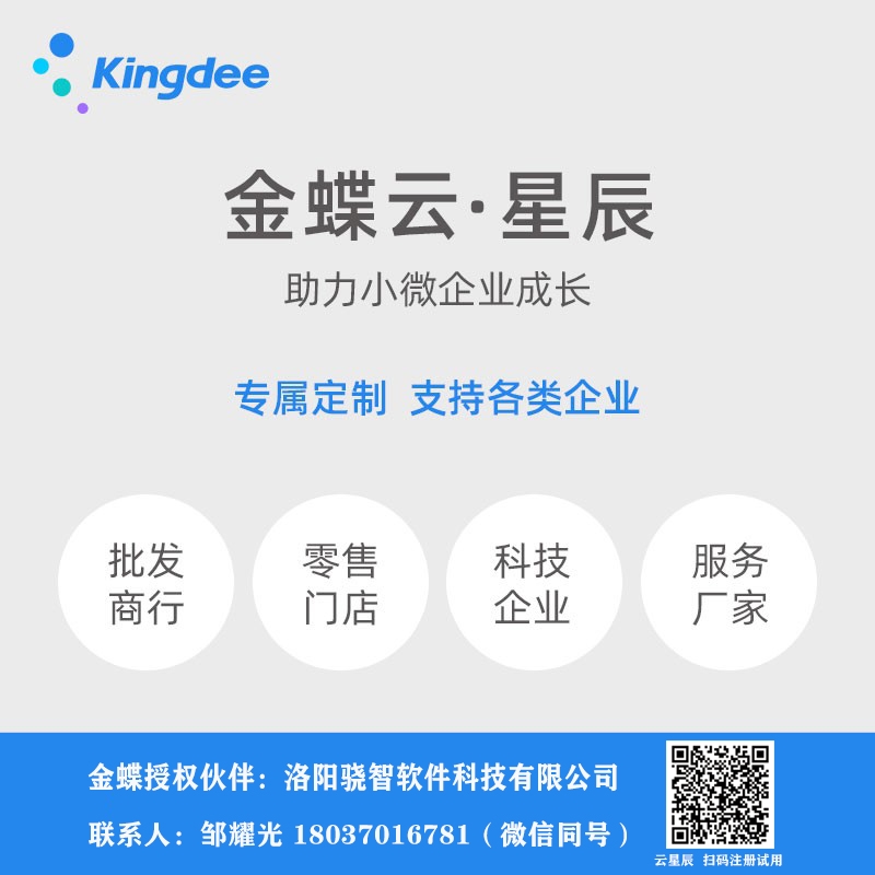 大家好,這里是“洛陽金蝶軟件,”洛陽驍智軟件科技有限公司,金蝶軟件洛陽地區(qū)授權(quán)“金牌”授權(quán)服務(wù)商,主營金蝶KIS云、金蝶云星空、金蝶云星辰、云會計、云進(jìn)銷存、金蝶賬無憂、金蝶云之家、金蝶配套產(chǎn)品等金蝶ERP管理軟件。