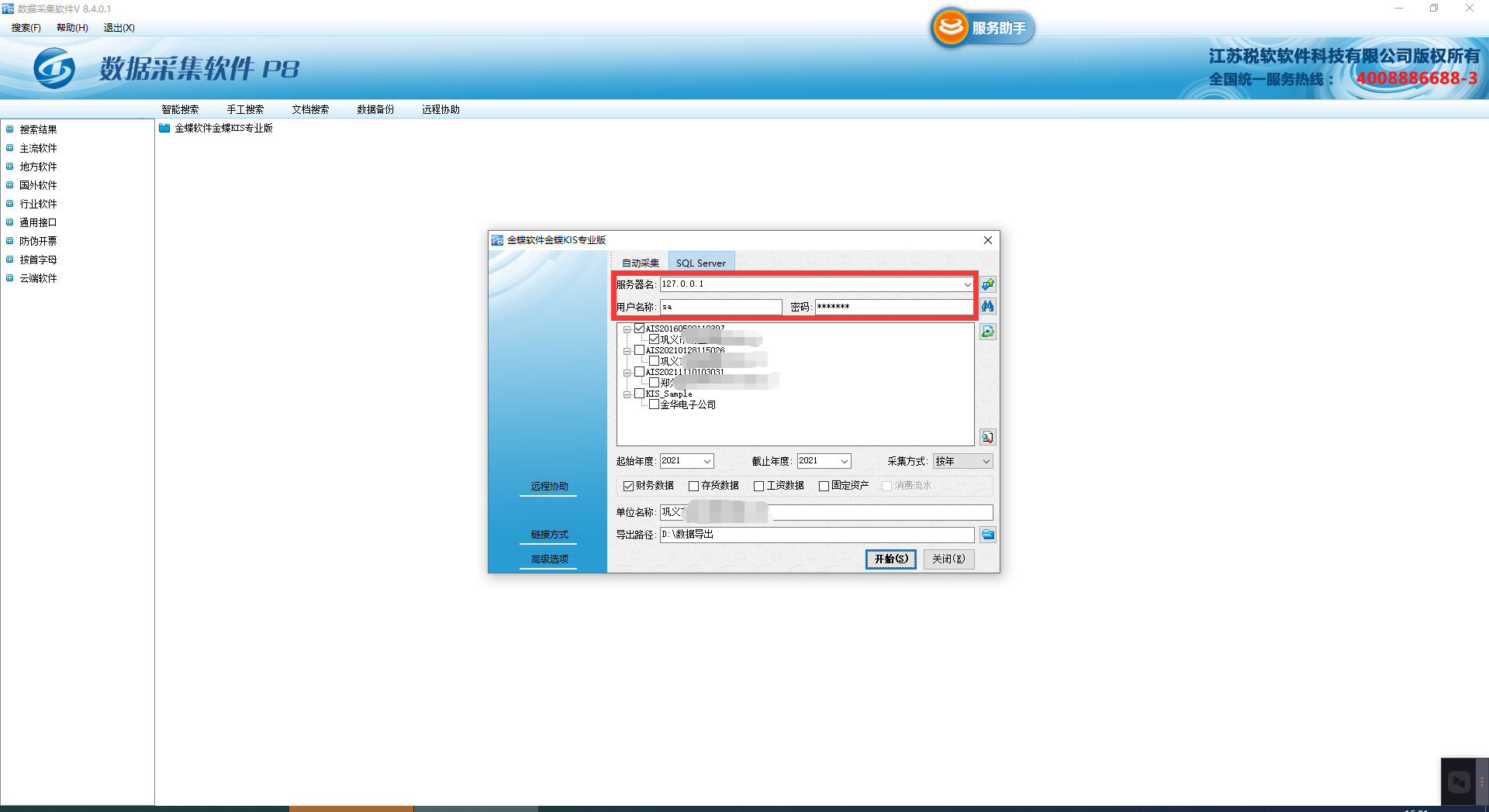 SQL Server: 我們選擇 SQL Server模式采集(顯示數(shù)據(jù)庫 全部賬套實(shí)例)