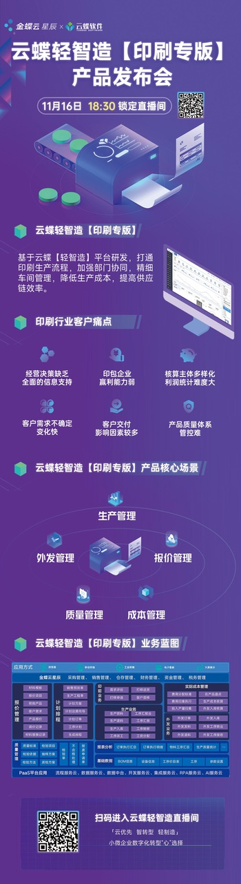 洛陽金蝶軟件-2022.11.16解決方案分享匯-云蝶輕智造【印刷專版】解決方案來咯