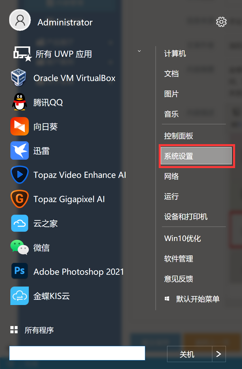 win10 、win11 開始菜單優(yōu)化后, 如下 【系統(tǒng)設(shè)置】;
