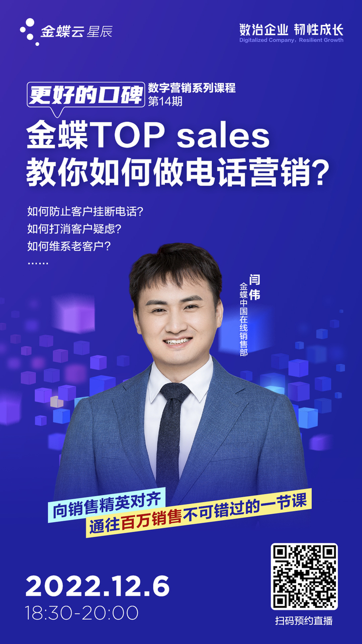 洛陽(yáng)金蝶軟件-2022.12.6【數(shù)字營(yíng)銷系列課程】第14期來啦! 打給客戶的第一通電話至關(guān)重要,如何讓客戶不掛機(jī)?如何打消客戶疑慮?如何促進(jìn)成單?成交后如何持續(xù)經(jīng)營(yíng)老客戶?
